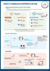 Ajouter aux favoris[Centre Inffo] Depuis le 8 mars 2026, un nouveau dispositif de l’aide exceptionnelle s’applique aux contrats d’apprentissage conclus à compter de cette date.Pour en bénéficier, la date de début d’exécution du contrat doit intervenir avant le 1er janvier 2027.