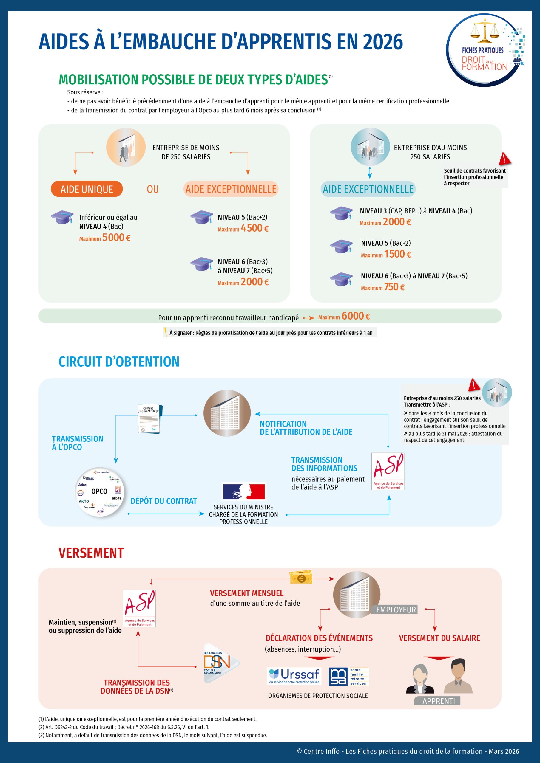 • l’aide unique aux employeurs d’apprentis (Code du travail) ;